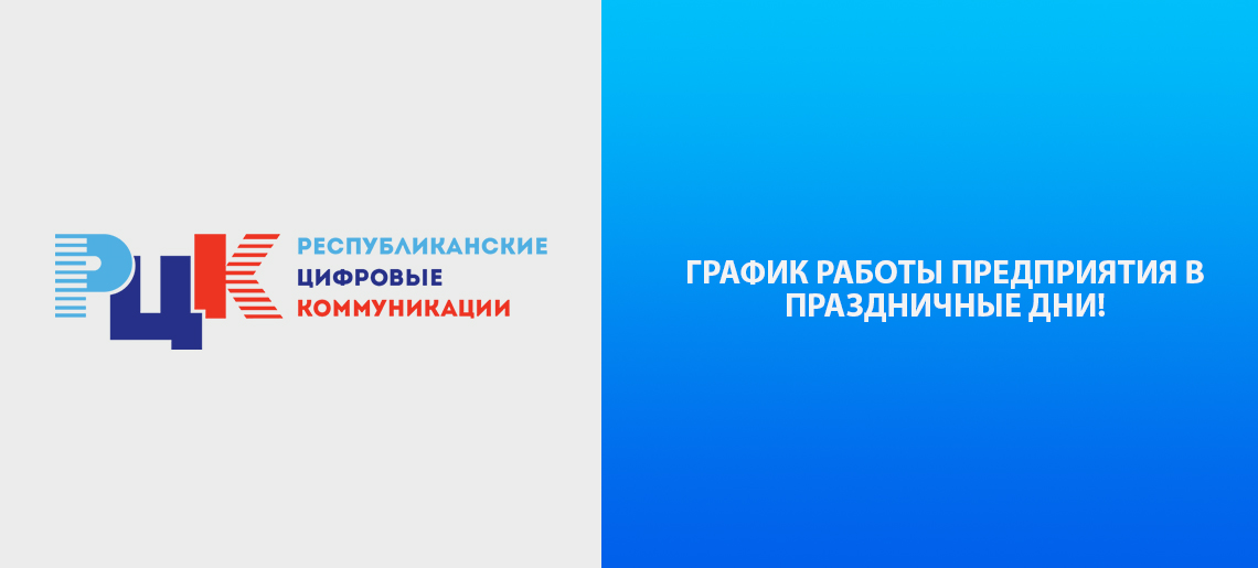 ГУП ЛНР “Республиканские цифровые коммуникации” поздравляет вас с наступающим праздником! Обратите внимание на график работы предприятия в праздничные дни:
